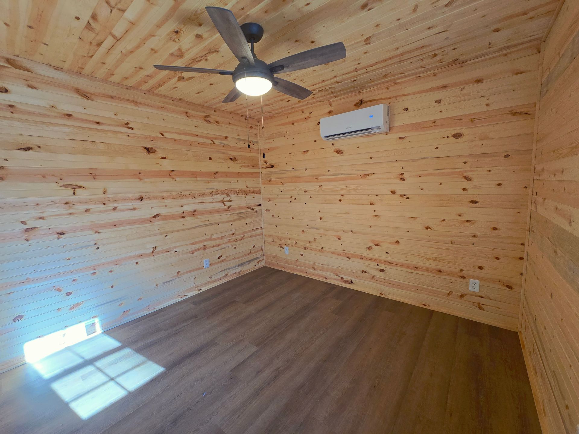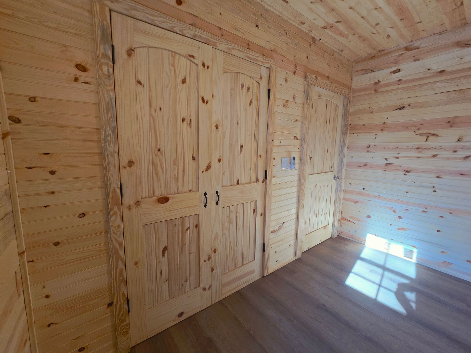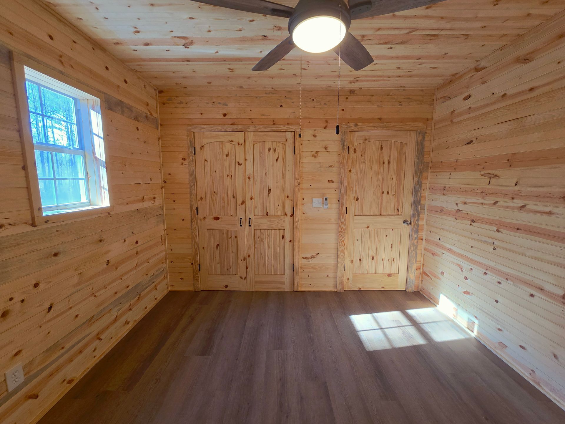 We can do this model with a wood foundation to save cost. Comes with pine tongue and groove interior, painted or natural Knotty pine.