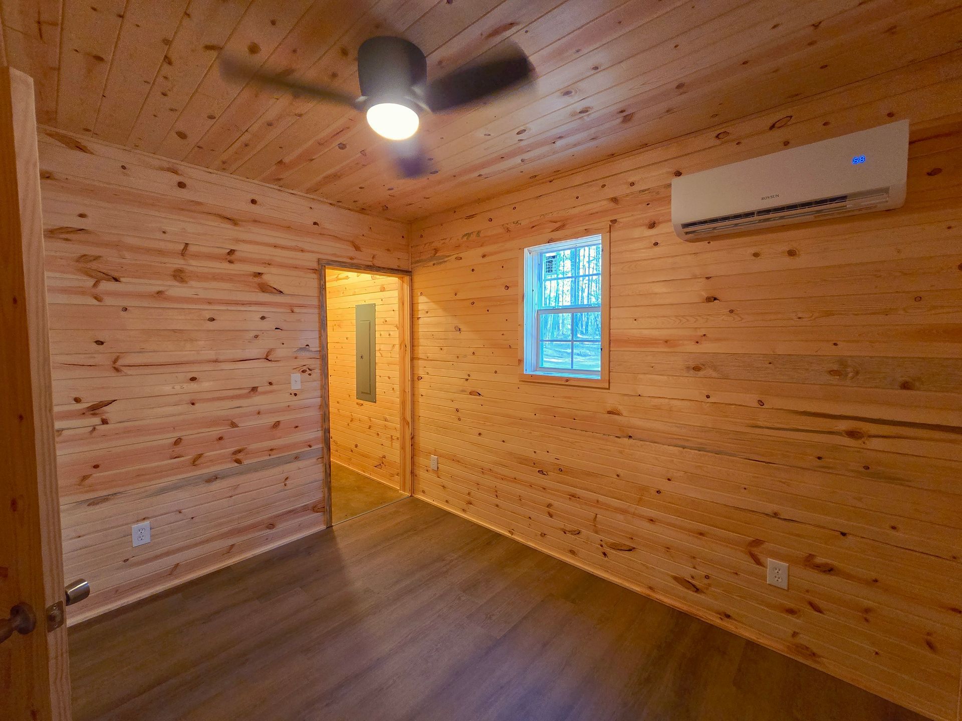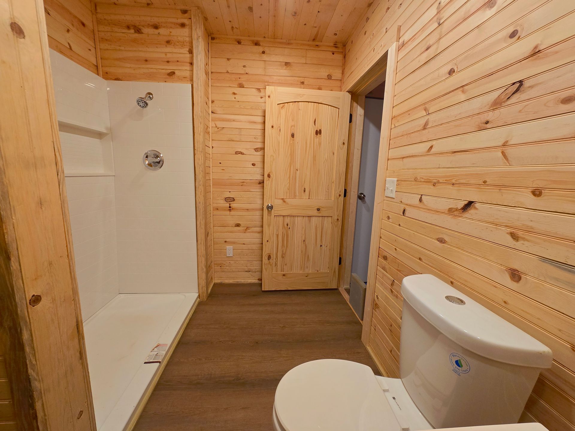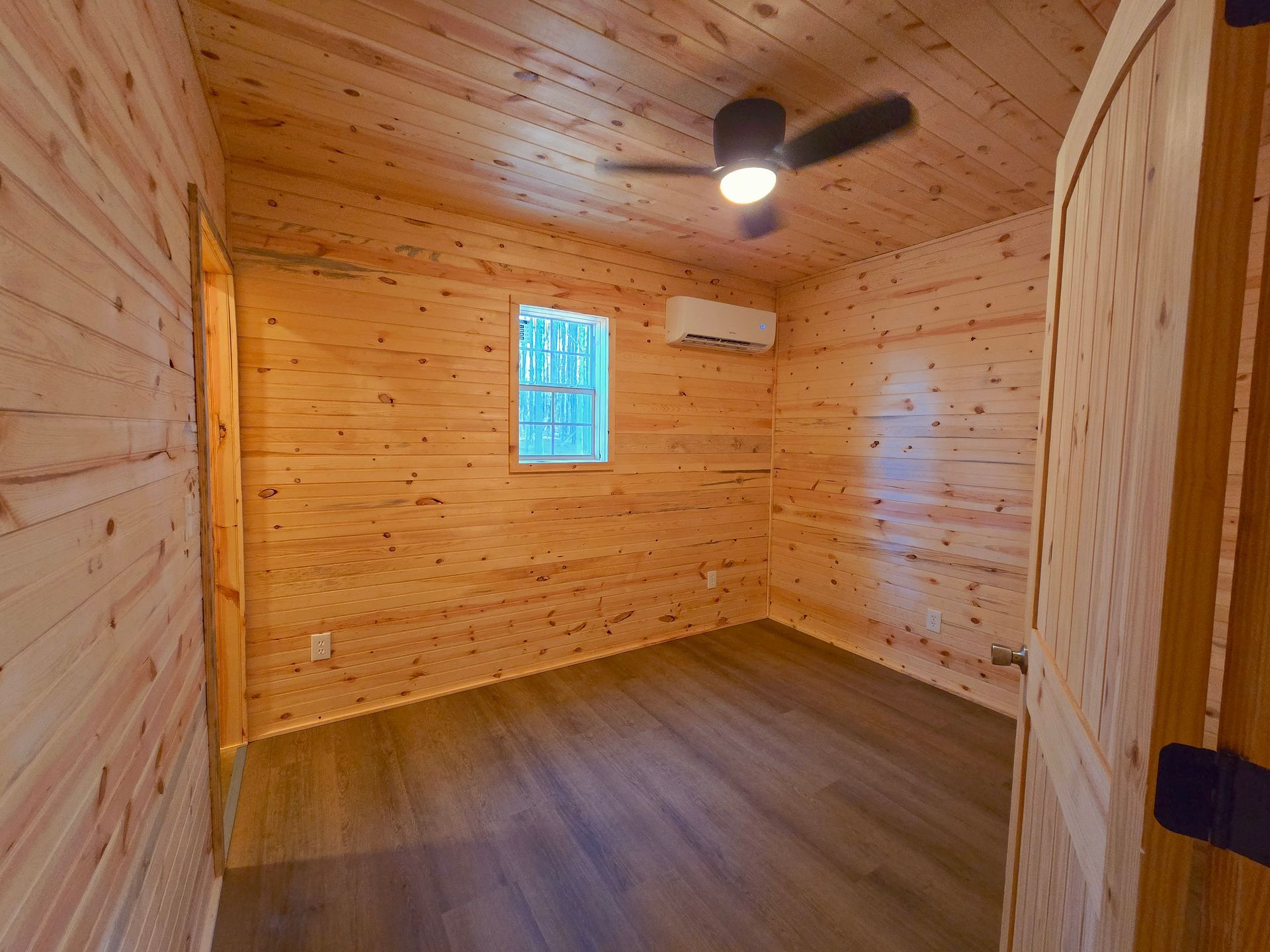 We can do this model with a wood foundation to save cost. Comes with pine tongue and groove interior, painted or natural Knotty pine.