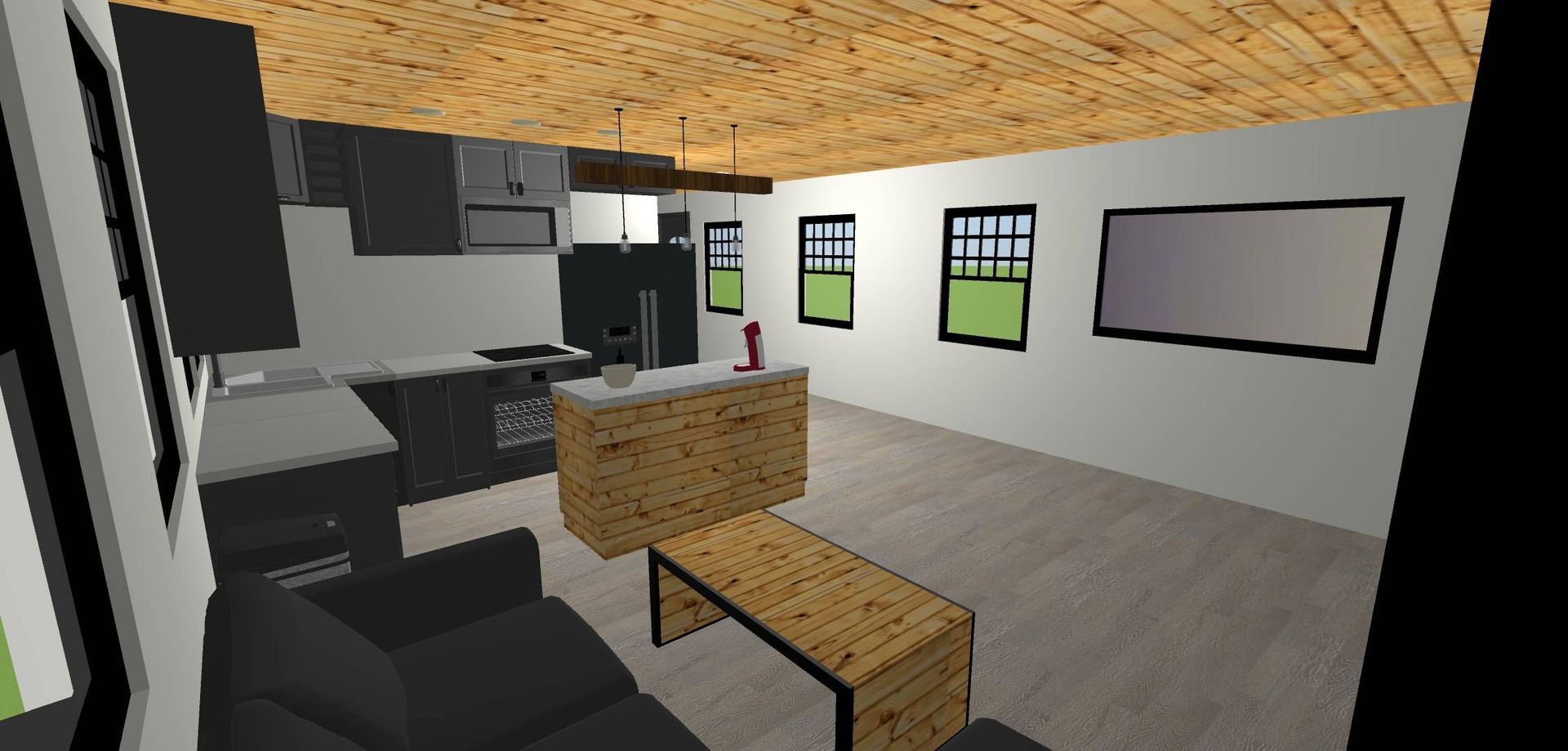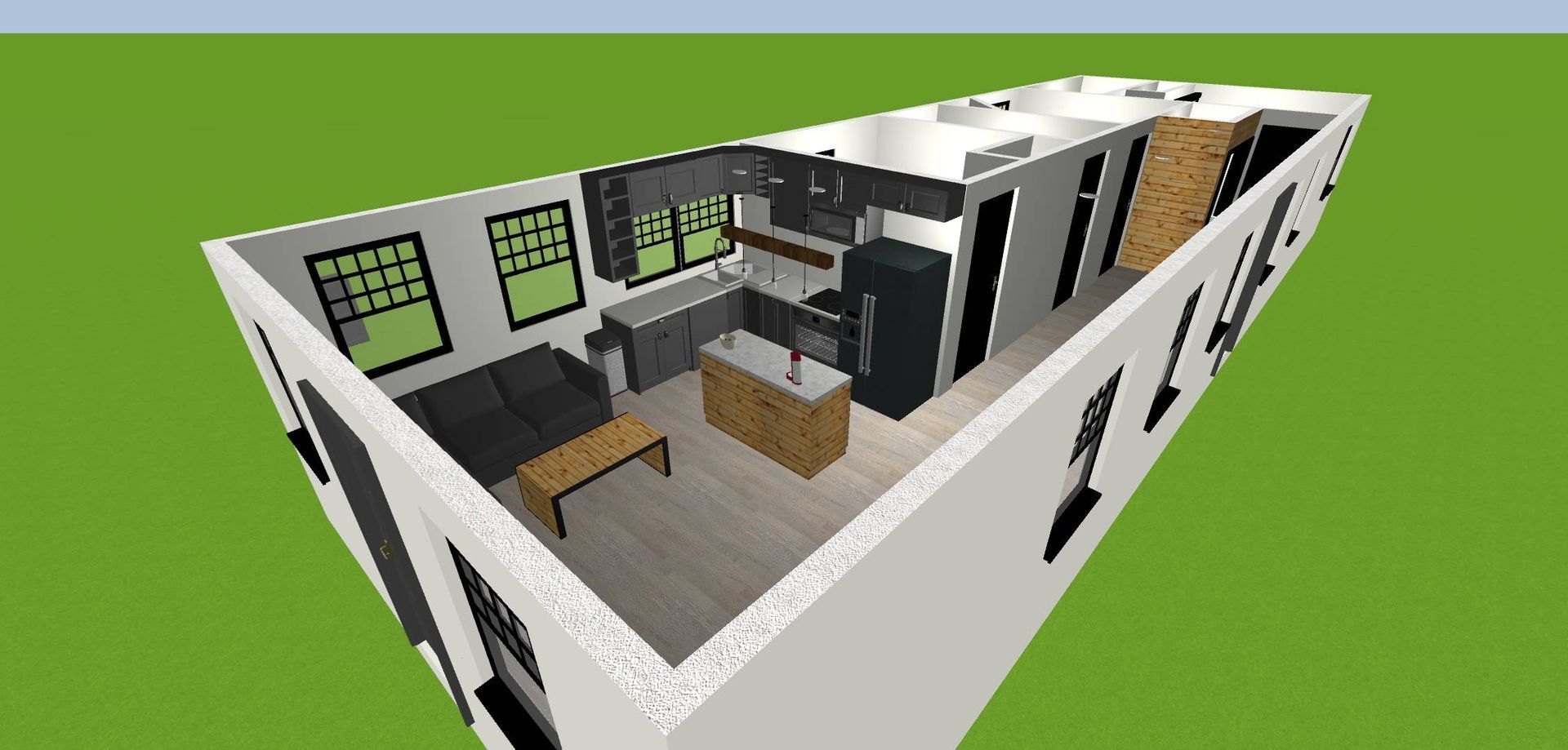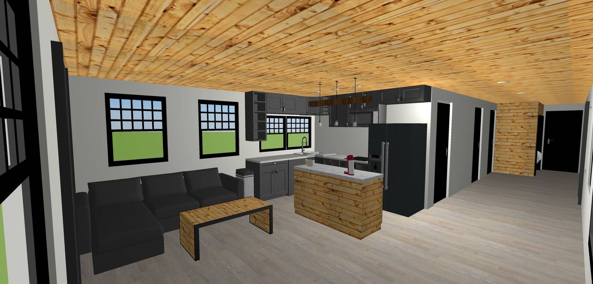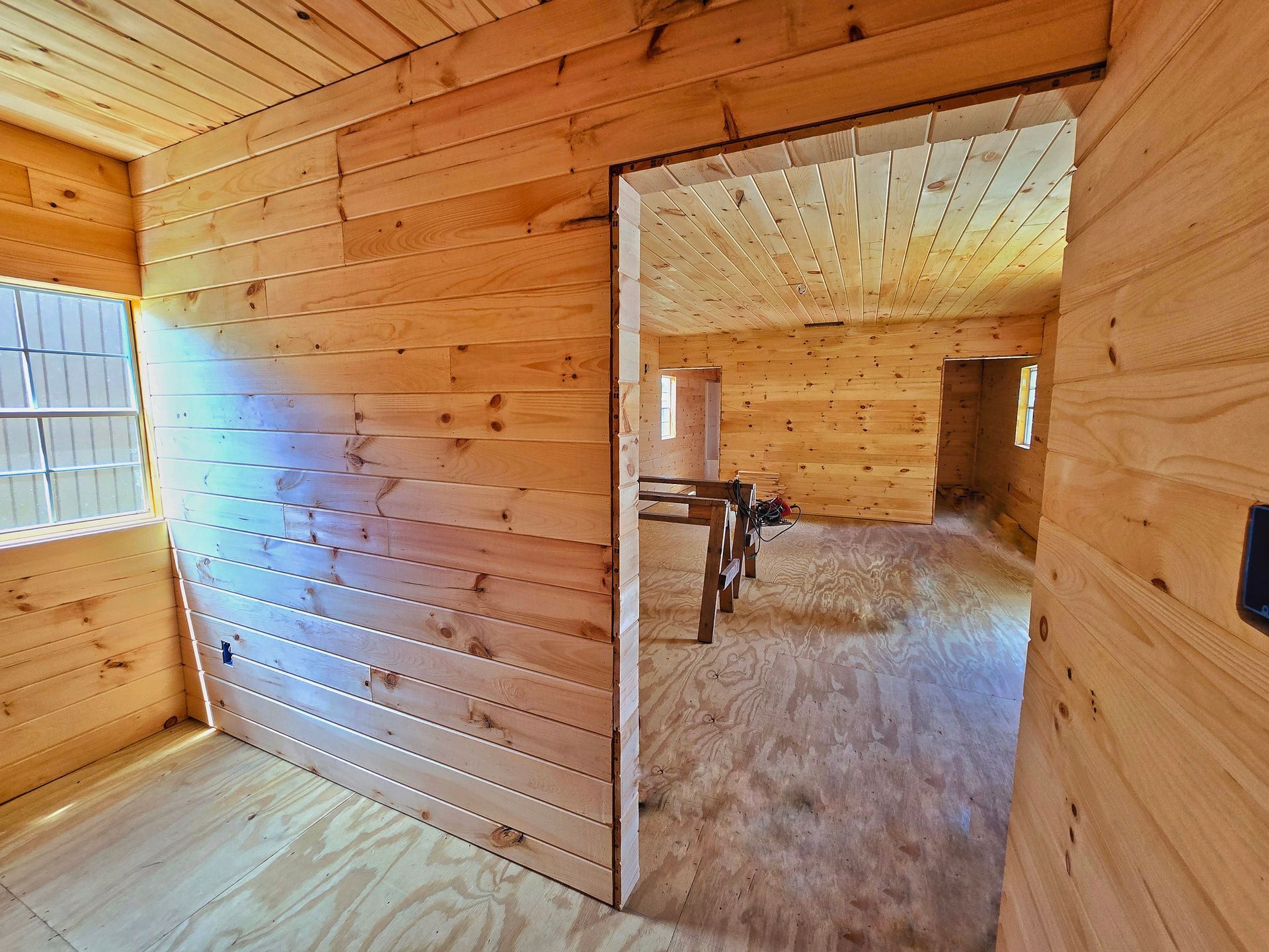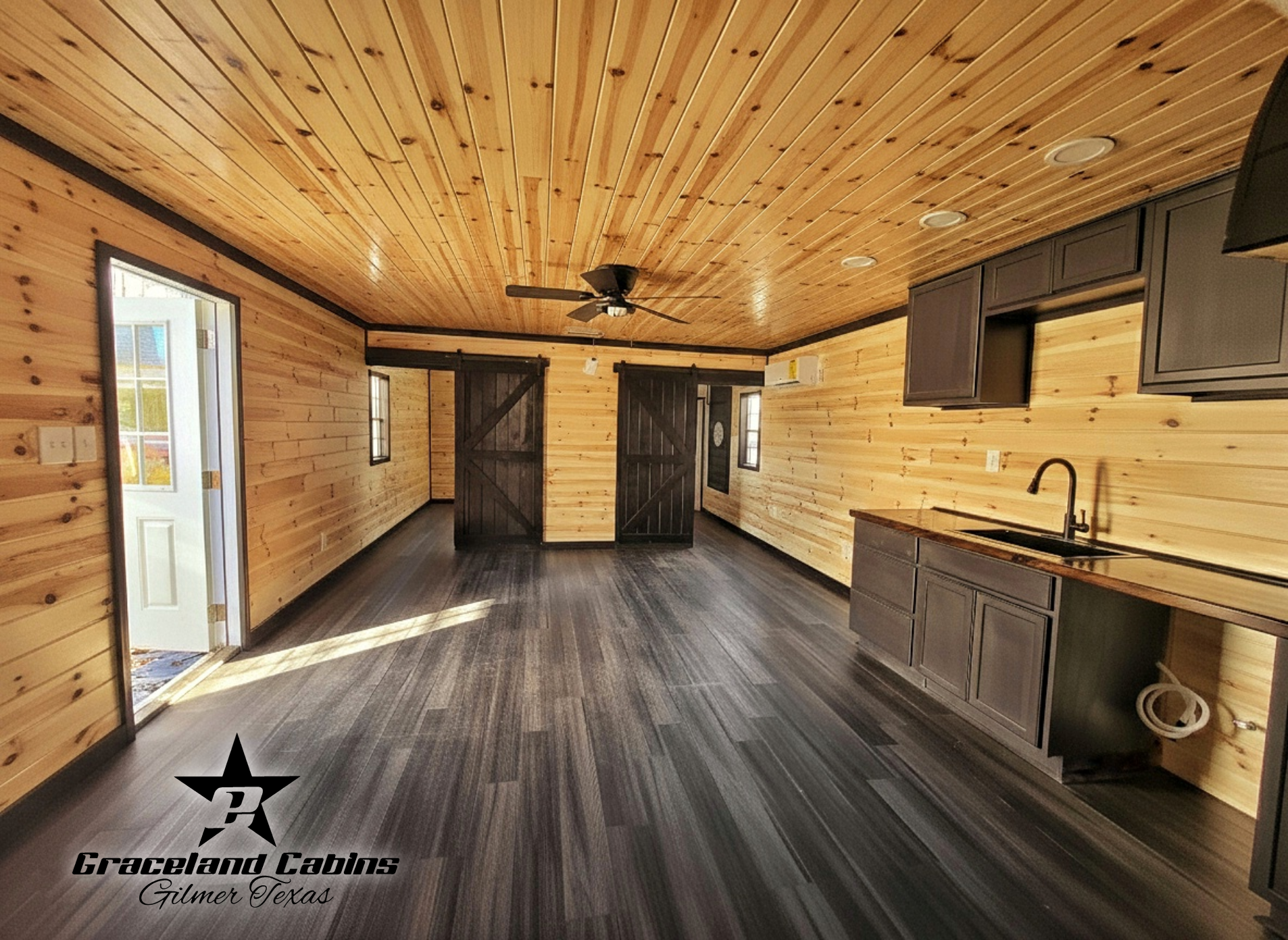 Basic model, Knotty Pine open floor plan 16x40 with basic electrical package