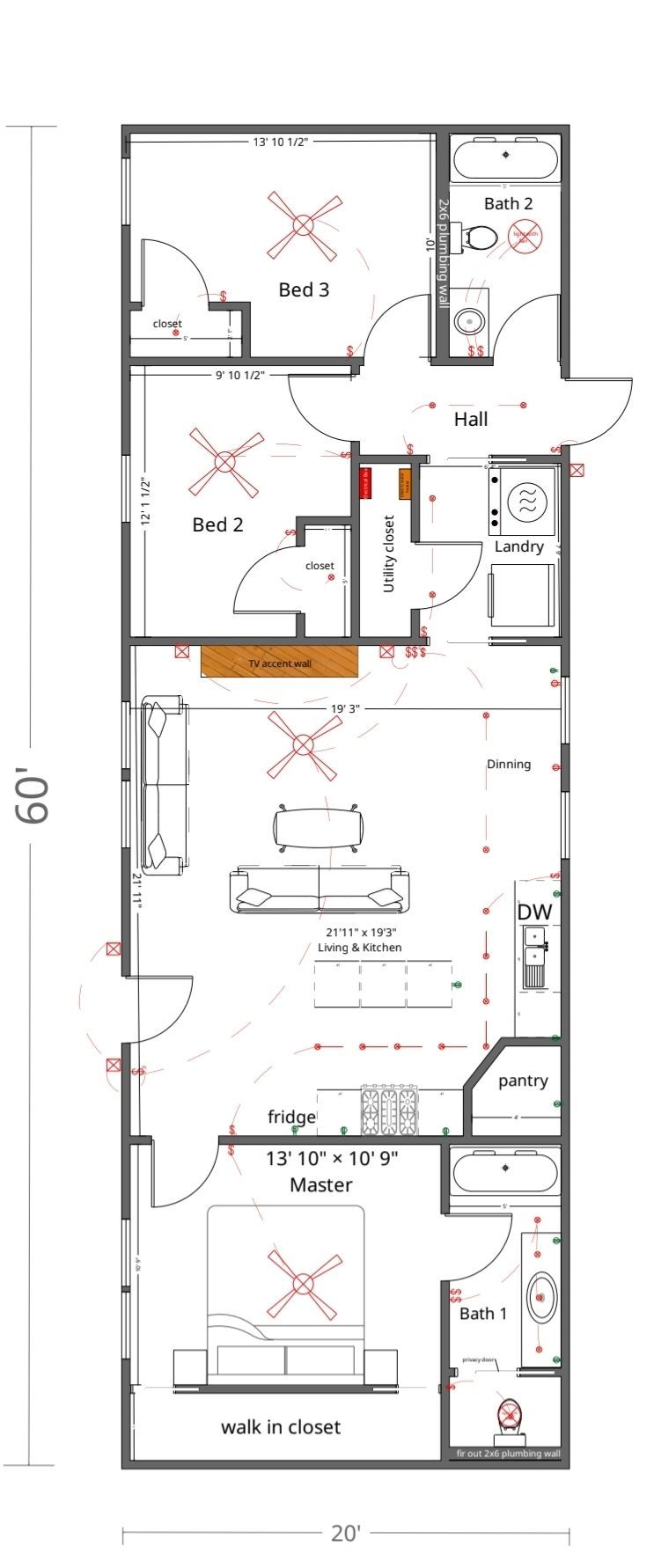 16x40 2bed 1bath , basic model, Natural pine walls, fixtures Below not include: